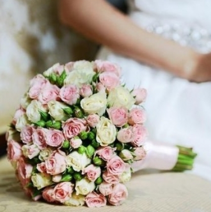 Нежное сочетание кустовых роз в прекрасном букете для невесты. Бутоньерка и пакет лепестков в подарок!